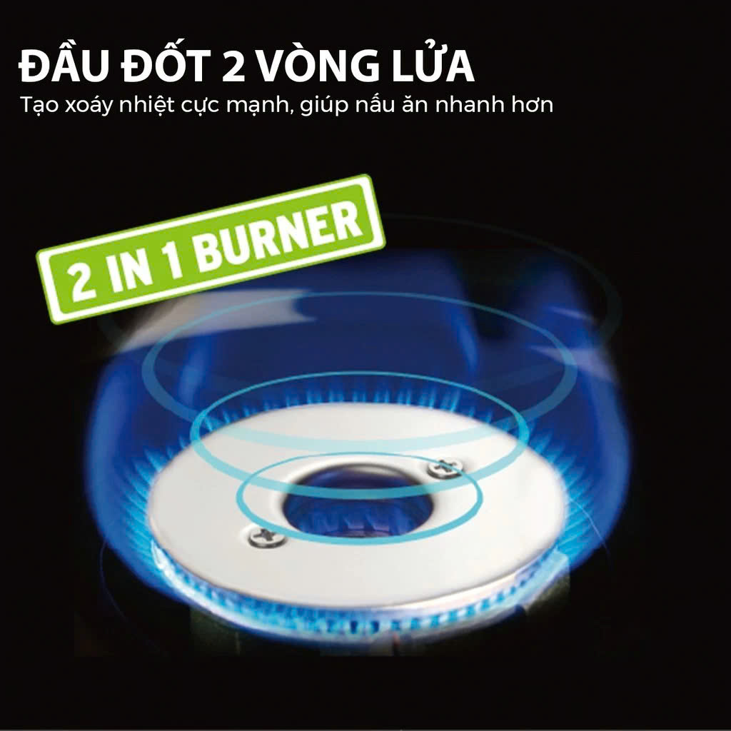 Bếp Ga Mini MS - 8000 được trang bị đầu đốt hai vòng lửa tạo xoáy nhiệt cực mạnh đã được cấp bằng sáng chế độc quyền, giúp phân bố ngọn lửa đều, nấu thức ăn chín nhanh.